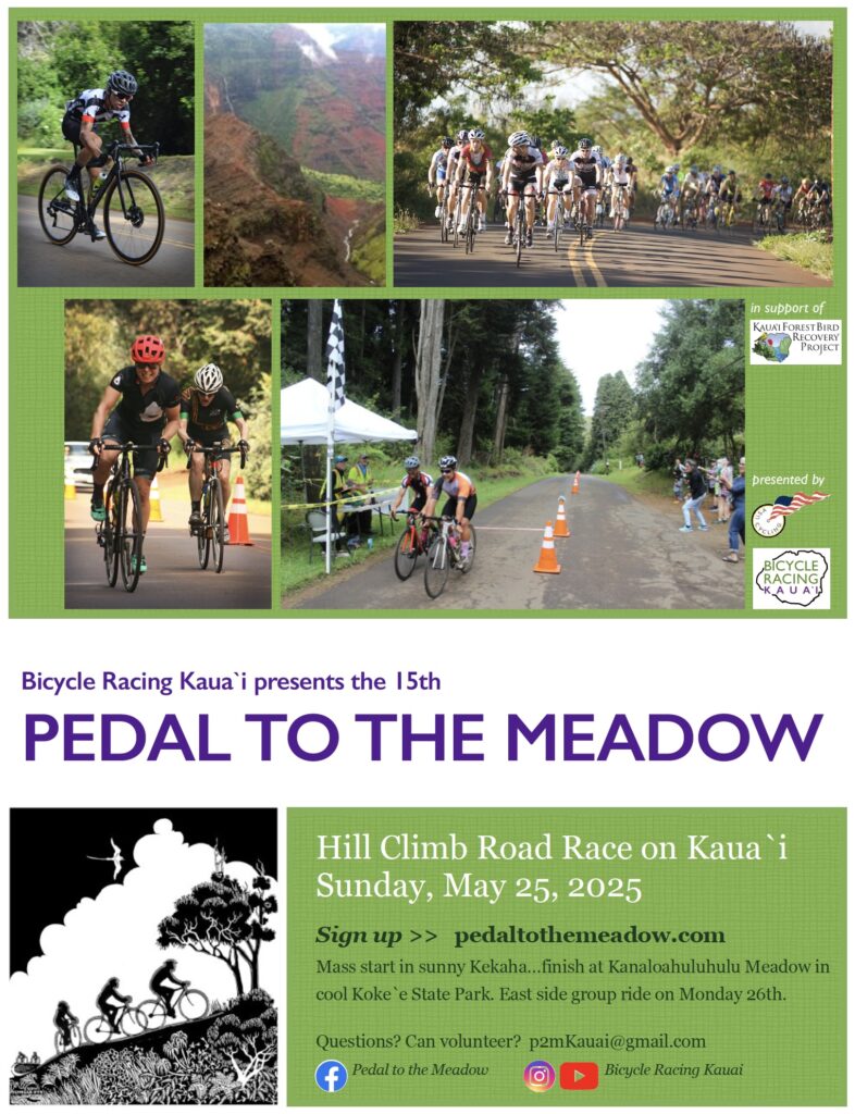 HBL Staff Travis, Malia, and Chris will be going over to Kaua‘i to support Bicycle Racing Kauaʻi’s annual Pedal to the Meadow race. This is a great race with amazing views and a great community that comes out for it. Join us this year or add it to your list to ride in the future. There is a post race picnic and awards ceremony at the top in Kanaloahuluhulu Meadow in Koke`e State Park.
