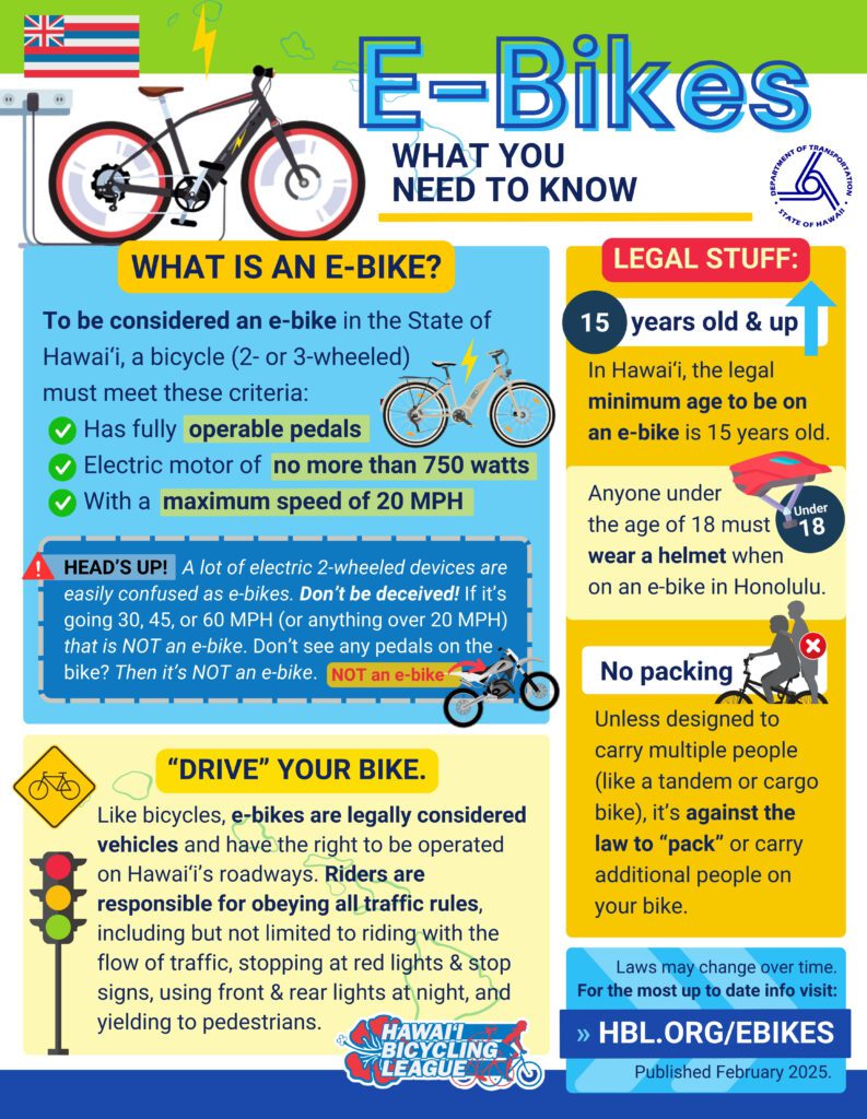 Learn what is considered an e-bike in Hawai‘i (and what is not), where they can be operated, and what sets them apart from traditional bicycles.