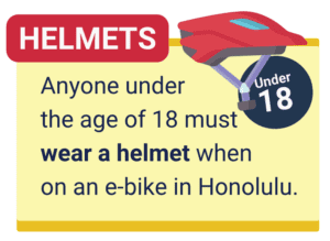 A properly fastened helmet is required for anyone on an e-bike under the age of 18 years in Honolulu county.