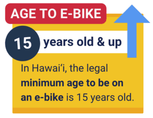 In Hawai‘i, you must be at least 15 years old to legally ride an e-bike.