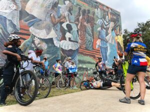 We addressed qualifications to becoming certified instructors, working to address the lengthy 70-question pre-assessment exam, and discussed challenges and solutions to leading a rigorous 23-hour training curriculum. In addition to lots of discussion and lively conversation in our chairs, it was great to get out on bike and check out the bicycle infrastructure around the Houston Precinct One area. We even “ran into” Commissioner Rodney Ellis out on our bike ride!
