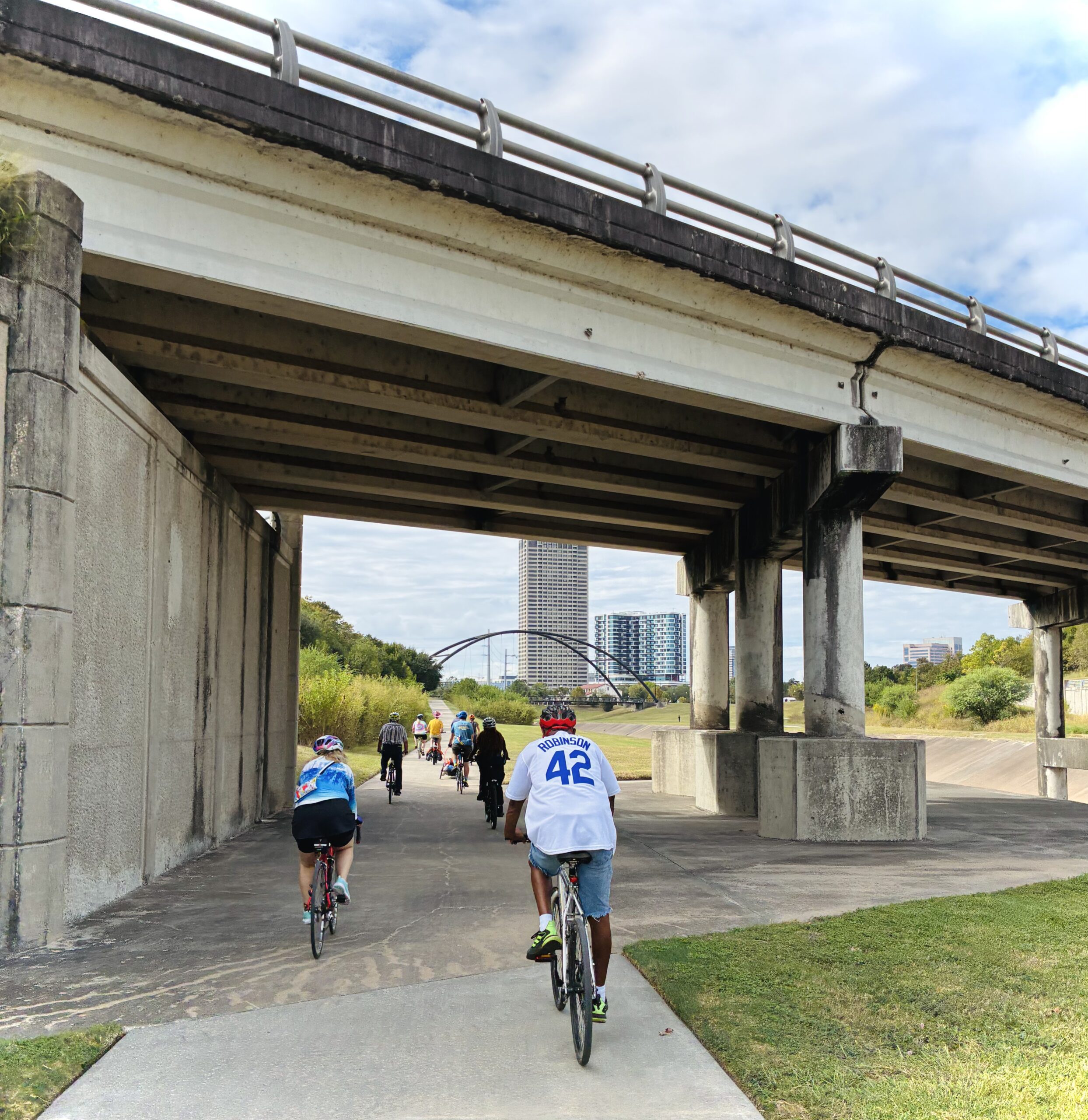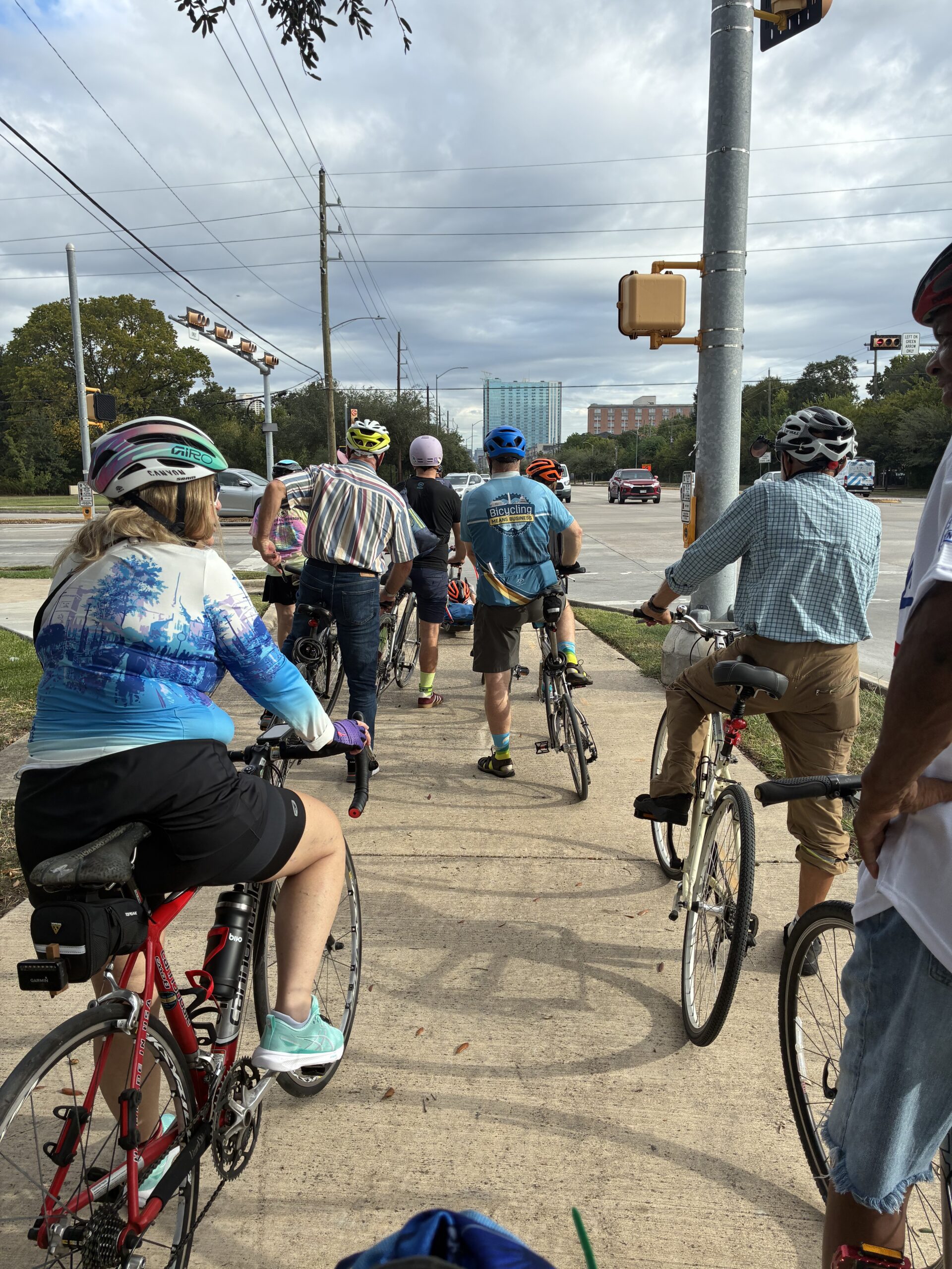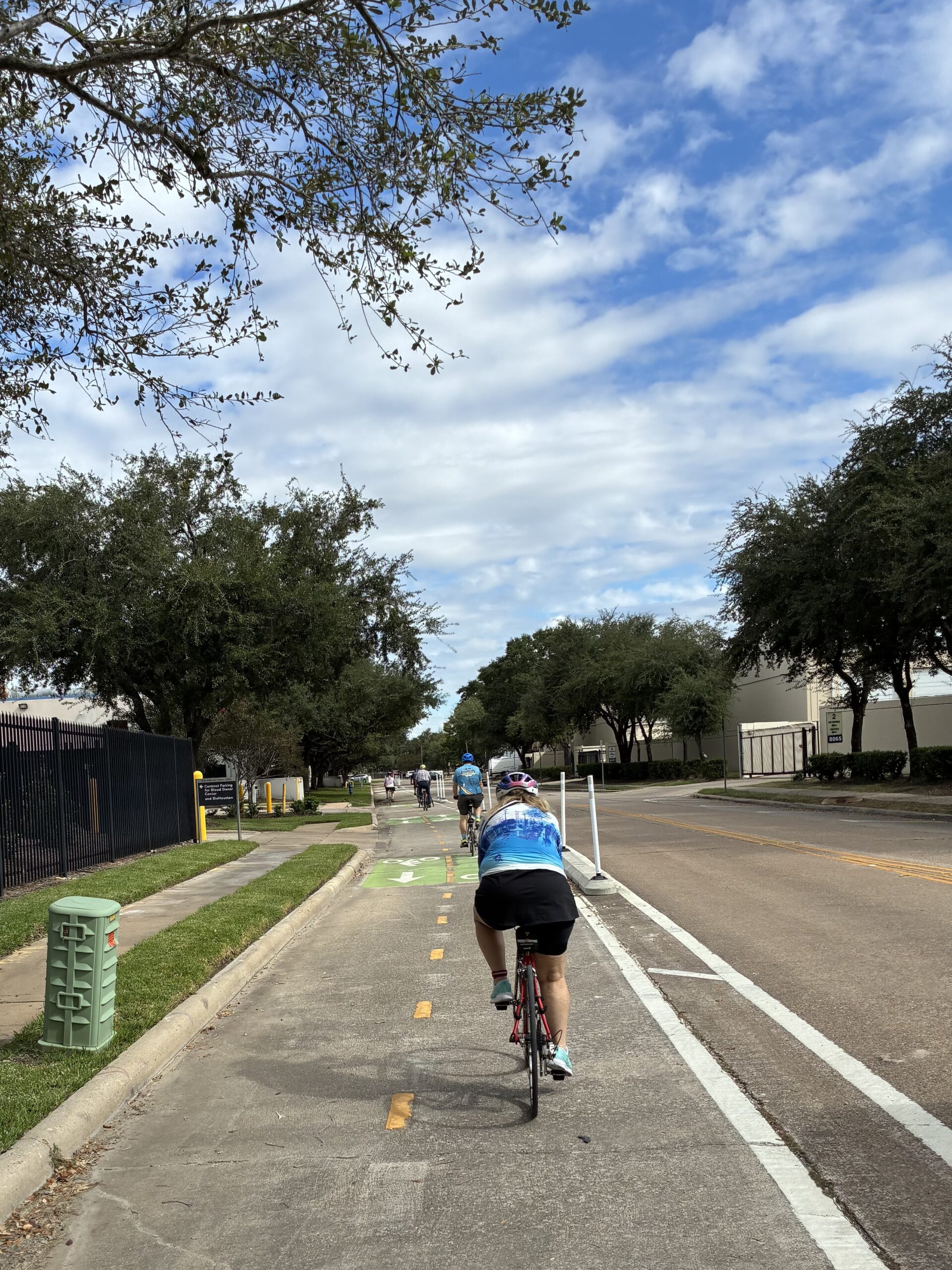We addressed qualifications to becoming certified instructors, working to address the lengthy 70-question pre-assessment exam, and discussed challenges and solutions to leading a rigorous 23-hour training curriculum. In addition to lots of discussion and lively conversation in our chairs, it was great to get out on bike and check out the bicycle infrastructure around the Houston Precinct One area. We even “ran into” Commissioner Rodney Ellis out on our bike ride!