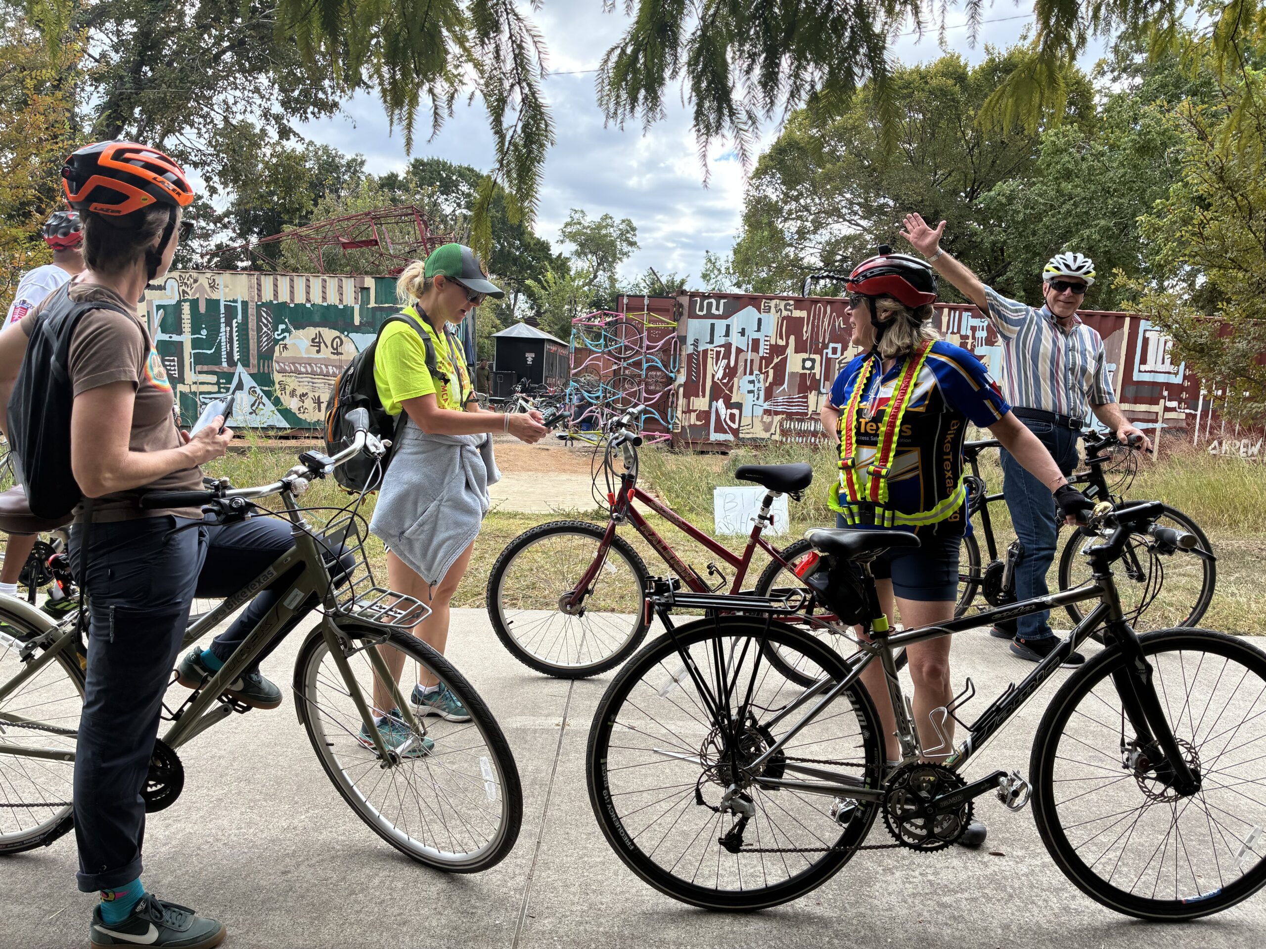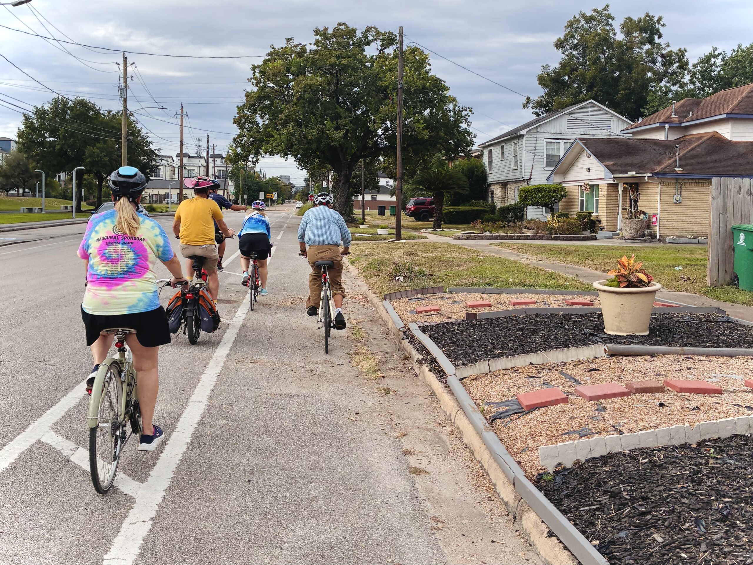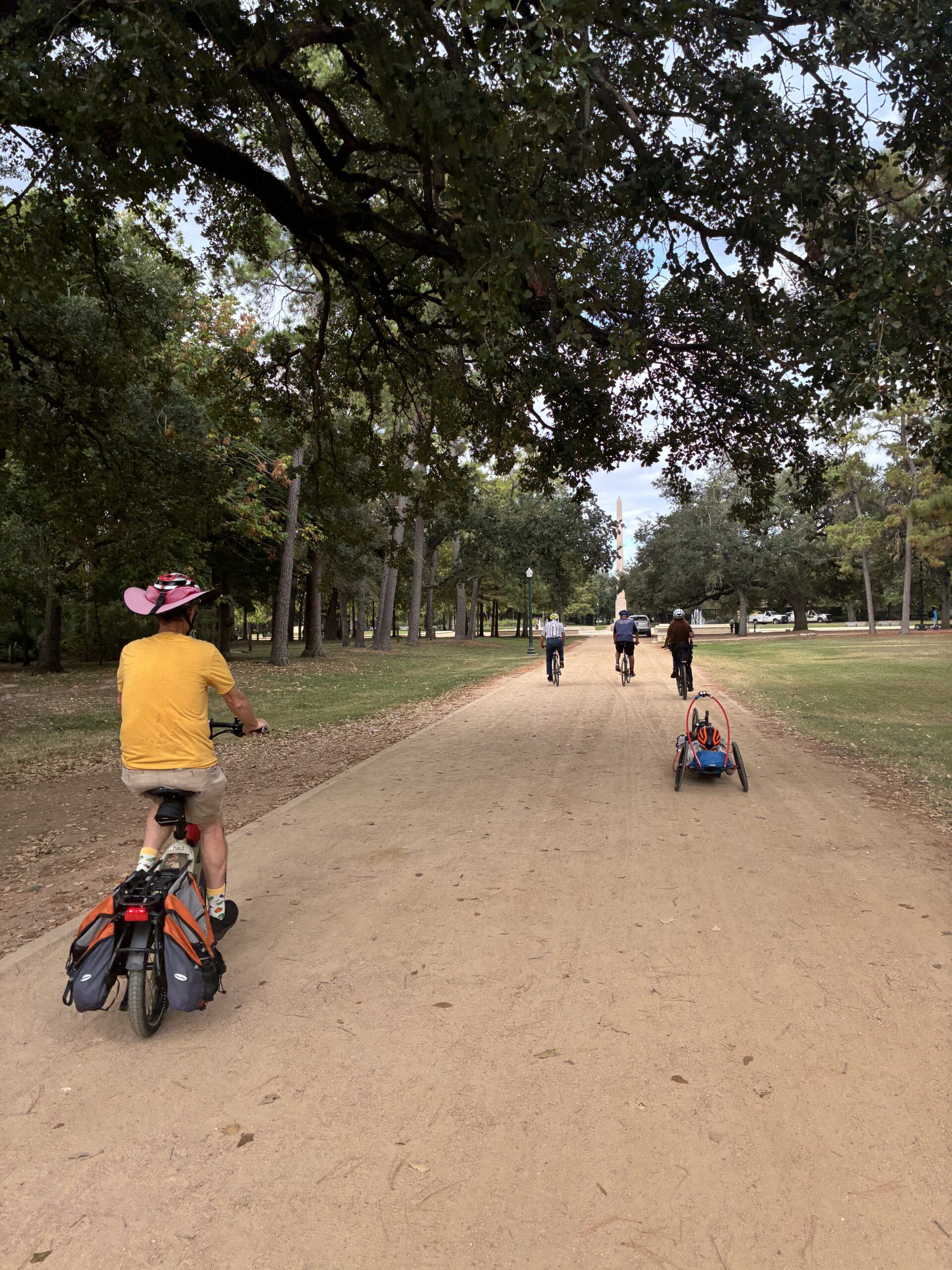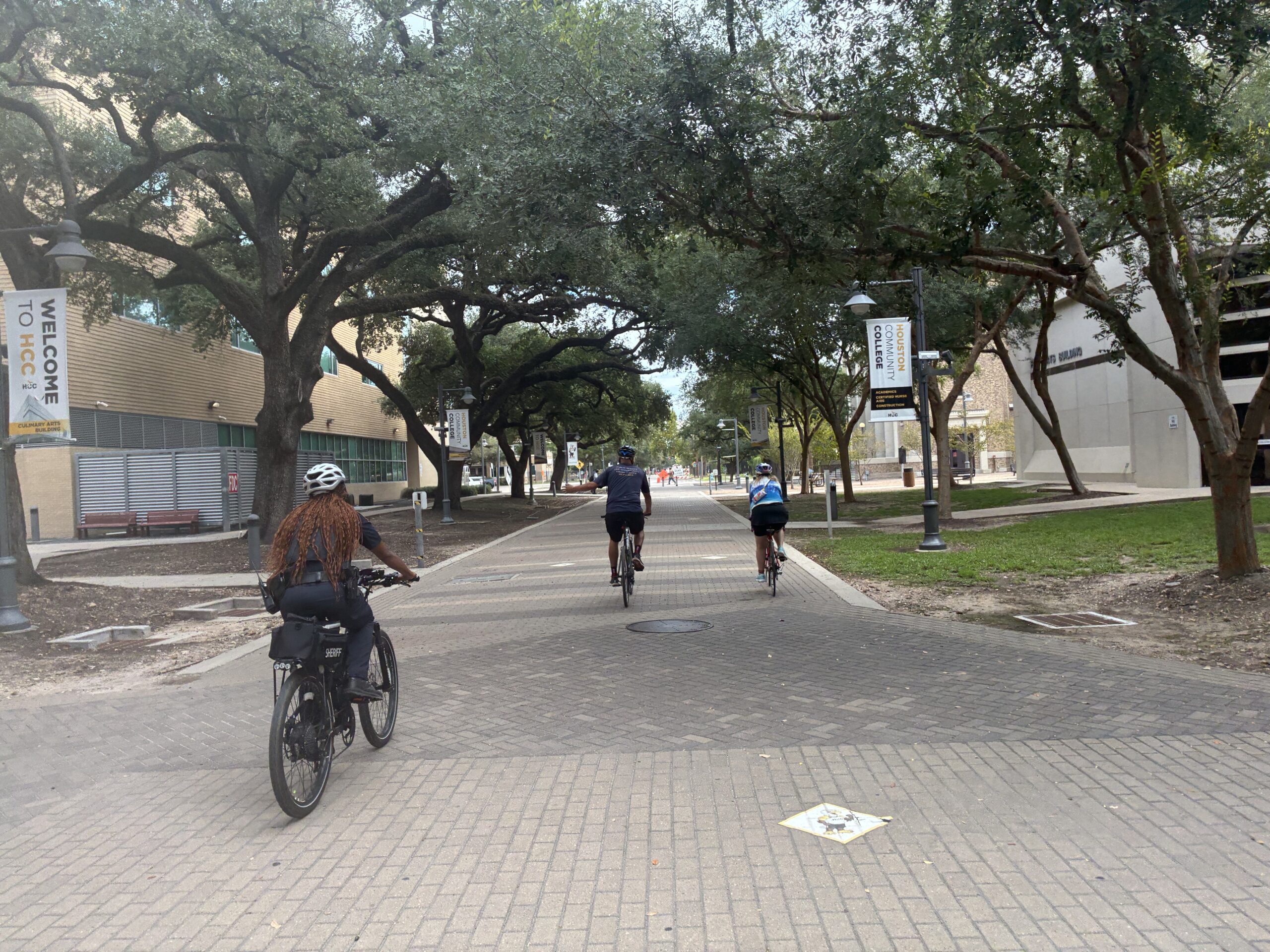 We addressed qualifications to becoming certified instructors, working to address the lengthy 70-question pre-assessment exam, and discussed challenges and solutions to leading a rigorous 23-hour training curriculum. In addition to lots of discussion and lively conversation in our chairs, it was great to get out on bike and check out the bicycle infrastructure around the Houston Precinct One area. We even “ran into” Commissioner Rodney Ellis out on our bike ride!