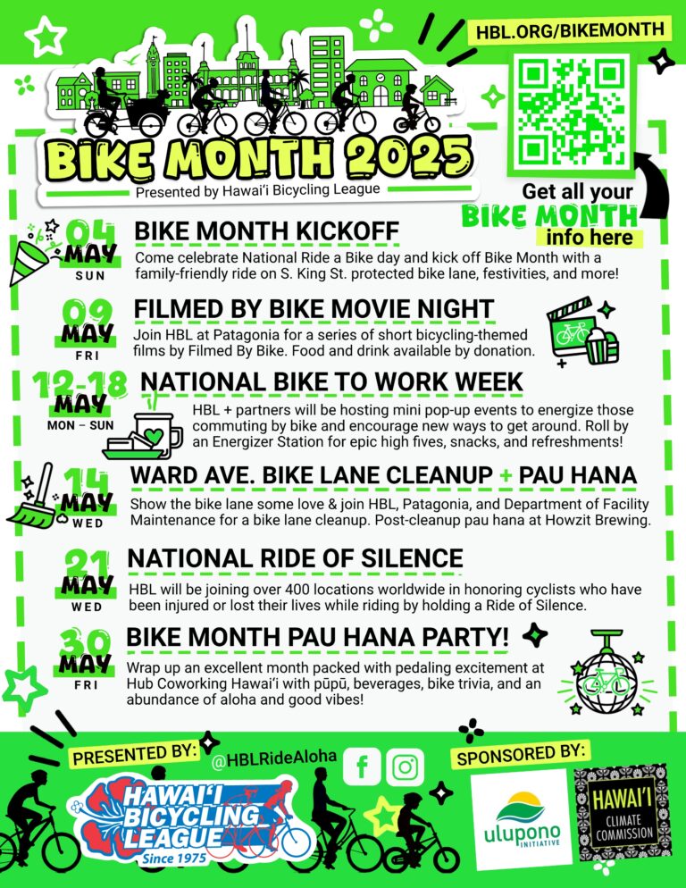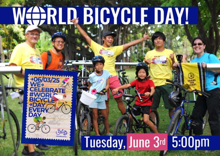 HBL is hosting a World Bicycle Day celebration on Tuesday, June 3rd in Kakaʻako! This free event and potluck will also be celebrate the opening of the new ped/bike bridge over Ala Moana Blvd. For tabling / event support, we are looking for volunteers to help share HBL materials and info with attendees!