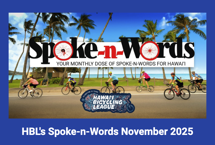 Hawai‘i Bicycling League offers education about biking & safe driving to all humans–cyclists, motorists, & pedestrians.