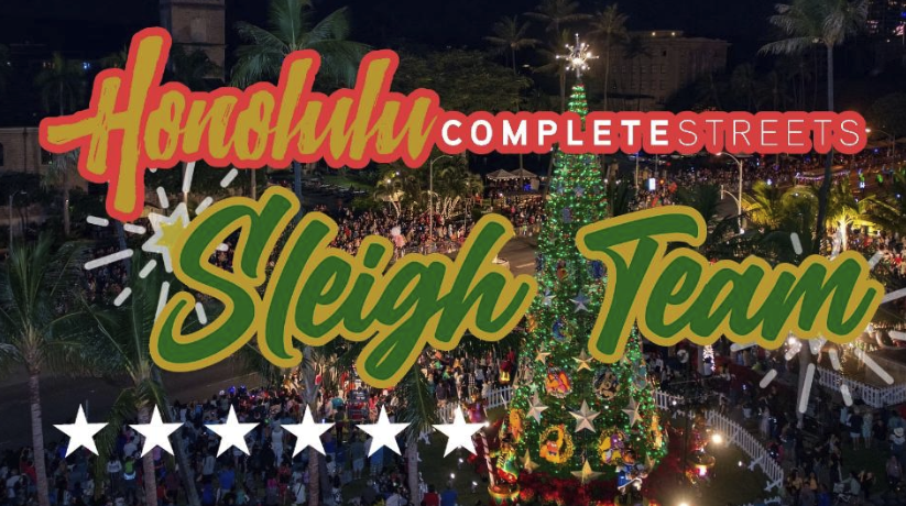 HBL has been invited to ride along with the City’s Complete Street “Sleigh Team” in this year’s Honolulu City Lights Parade on Saturday, November 29th. Registration is free but sign up now (we’re limited to 40 riders!)